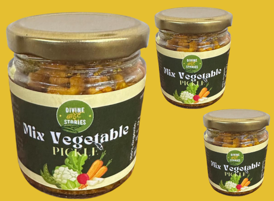 At Divine Bite Stories, we believe in keeping every ingredient pure and natural. That’s why our pickles are 100% handcrafted, preservative-free, and made in small batches to ensure authentic flavor and freshness. Every bite bursts with tangy spice, earthy aroma, and nostalgic warmth, turning even the simplest meal into a feast of flavors.